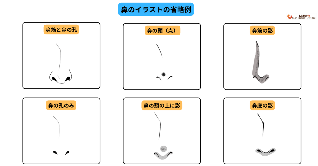 などのよく使われる省略パターンをもとに、誰でもすぐ実践できる鼻の描き方を解説します。